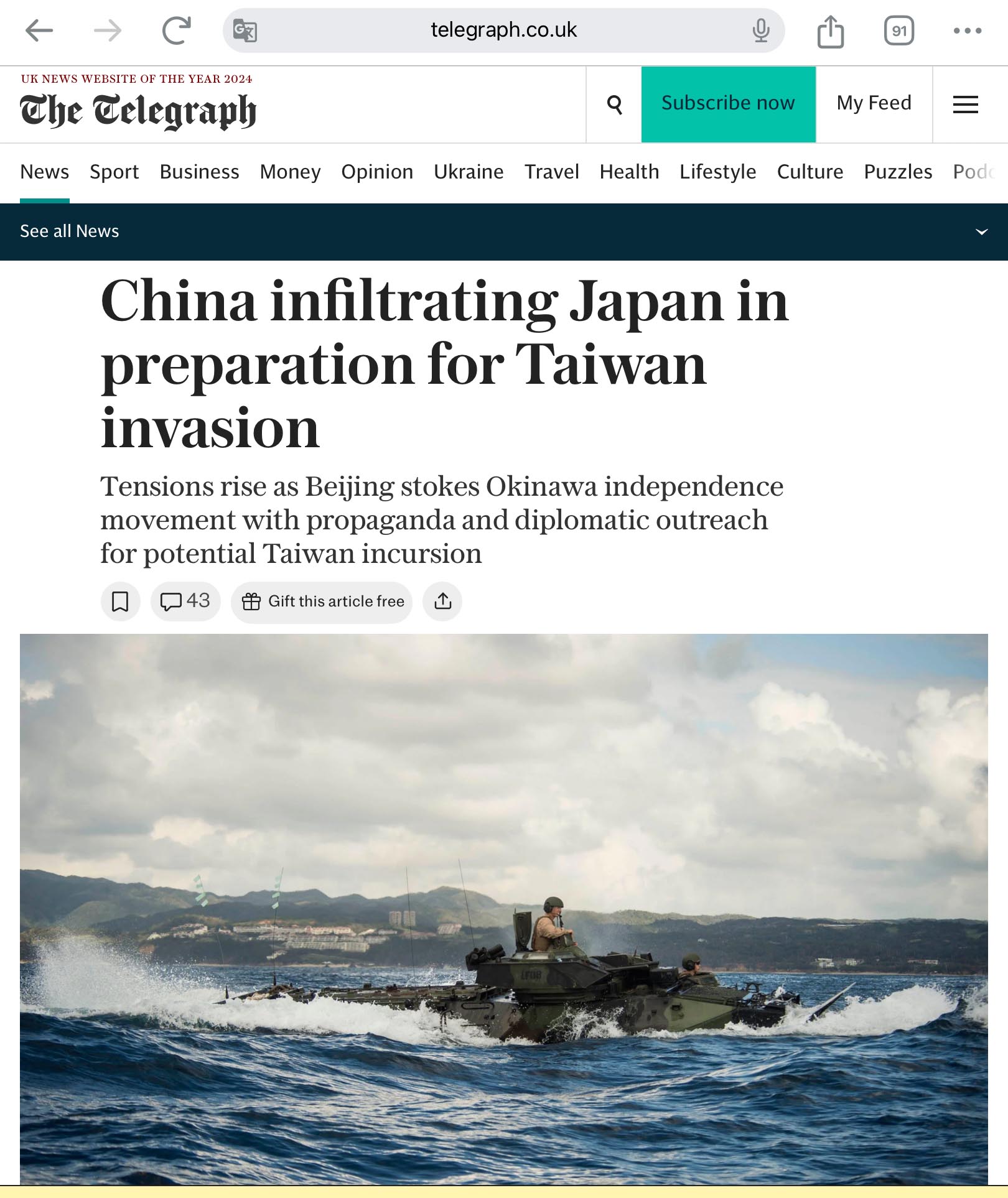 He said: メThere have been growing reports of China carrying out a ヤsilent invasionユ of Okinawa and Xi Jinping sometimes talking about support for the ヤOkinawa argumentユ.