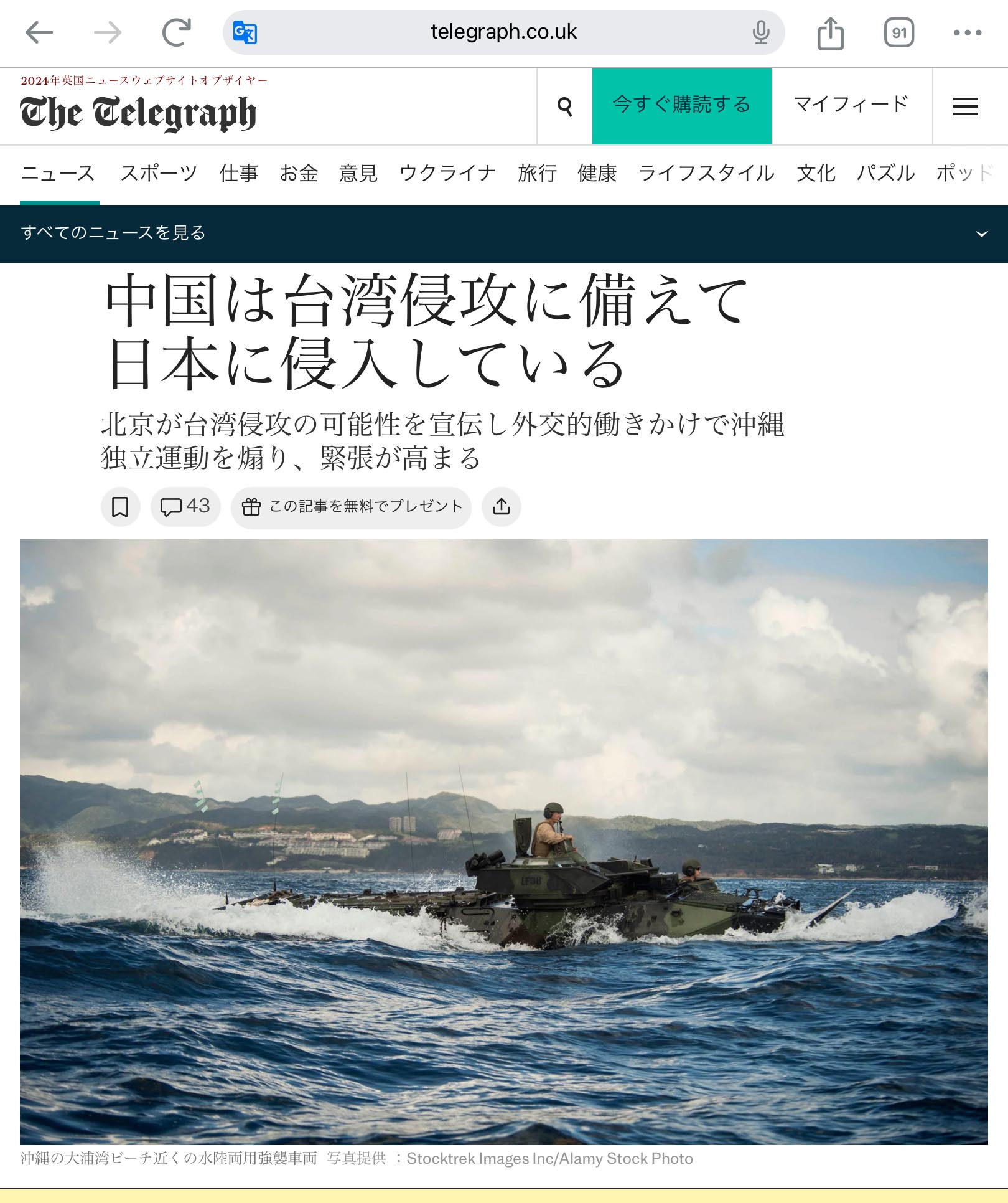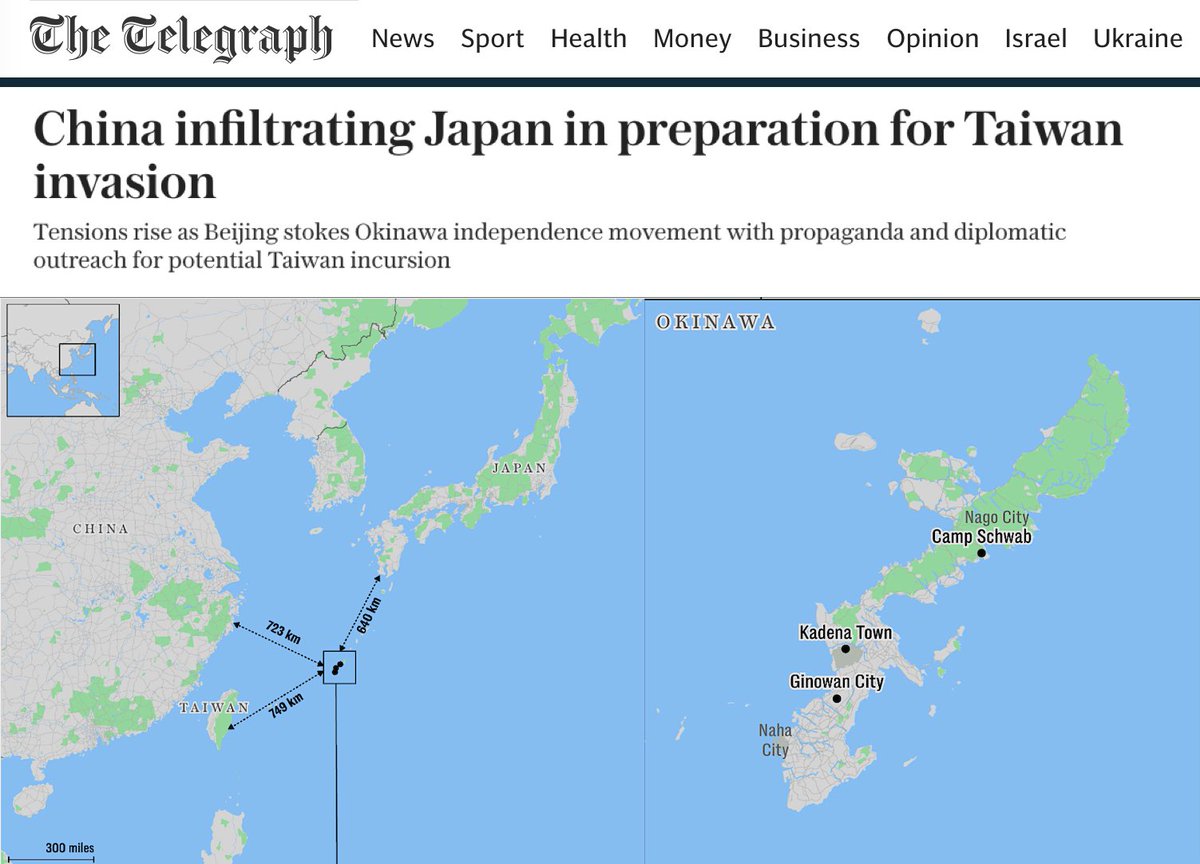保守党の政治家、島田洋一氏はテレグラフ紙にこう語った。「中国人はすでに沖縄にいて、世論や選出議員に影響を与えようとしていると確信している。」